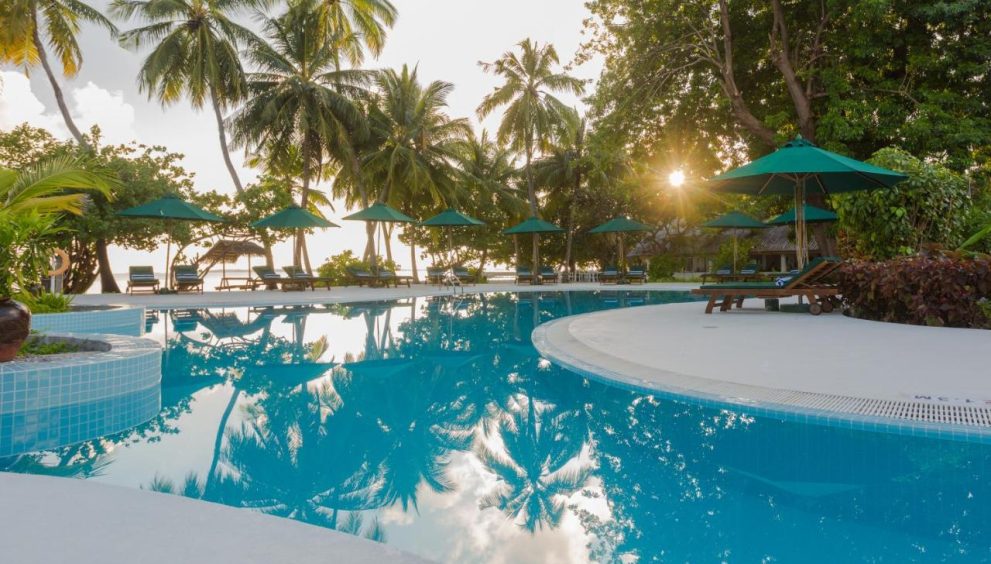 Located just five minutes from Gan International Airport, the resort blends convenience with authentic southern Maldivian charm. Its 78 spacious bungalows open into lush gardens, complemented by beachfront dining, a pool, gym, and meeting facilities.